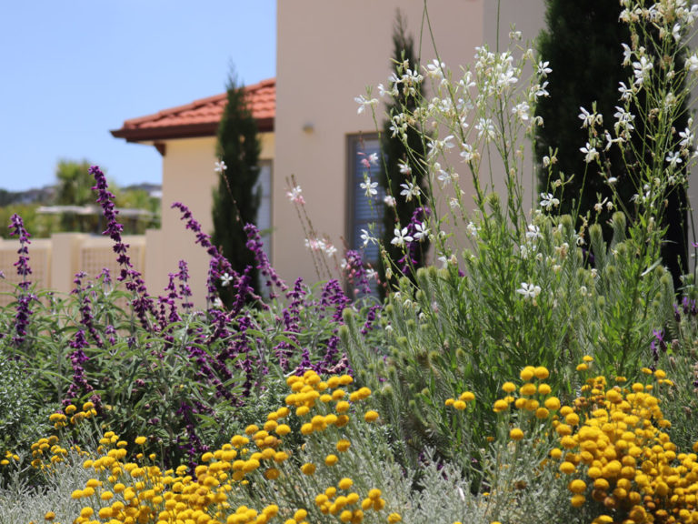 To complement the architecture of the house a casual Mediterranean themed garden was created.