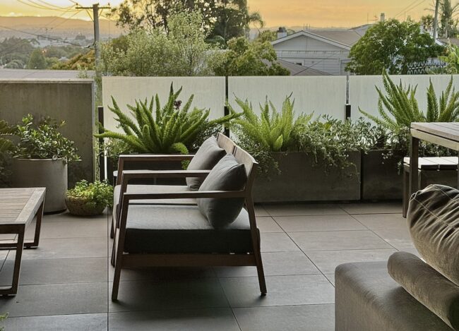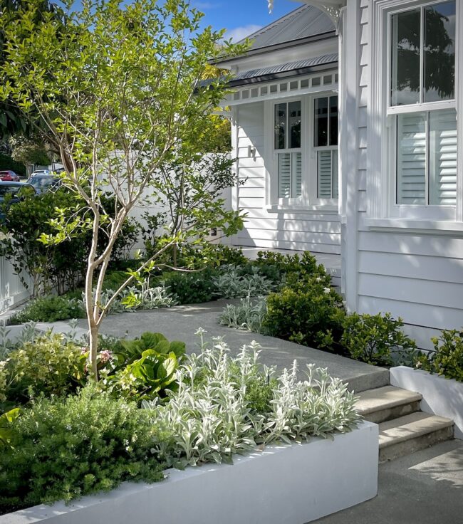 Contrasting low textural planting delivers street appeal in spades for a gorgeous villa.