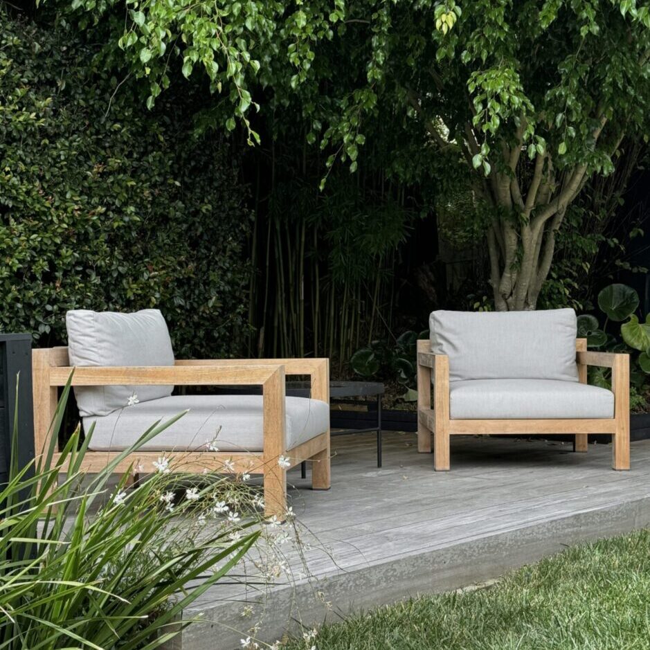 Dual decks provide options for relaxing in sun, or shade, while the boardwalk frames the central lawn and enhances the connection between home and garden.